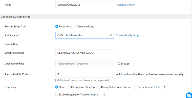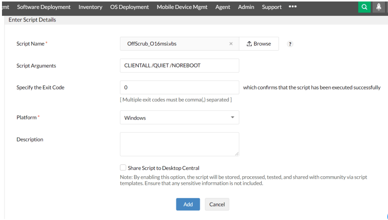 Script Name: Cihazdan kaldırılacak Office sürümüne ait VBS script dosyasını yükleyin. (Ekte dosyalar iletilmiştir.)